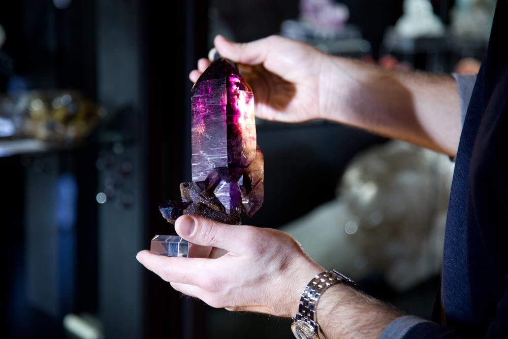 在巴西等宝石产地,紫水晶有时会形成遍布晶体的大型空心水晶晶洞, 体积之大使您甚至可以站在上面。