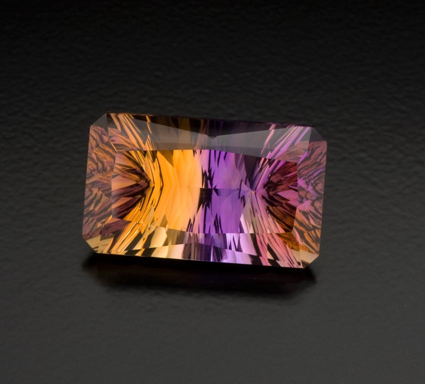 在玻利维亚,紫水晶和黄水晶出现在同一晶体中。 这种称为紫黄晶的独特宝石,一半是紫色一半是黄色。