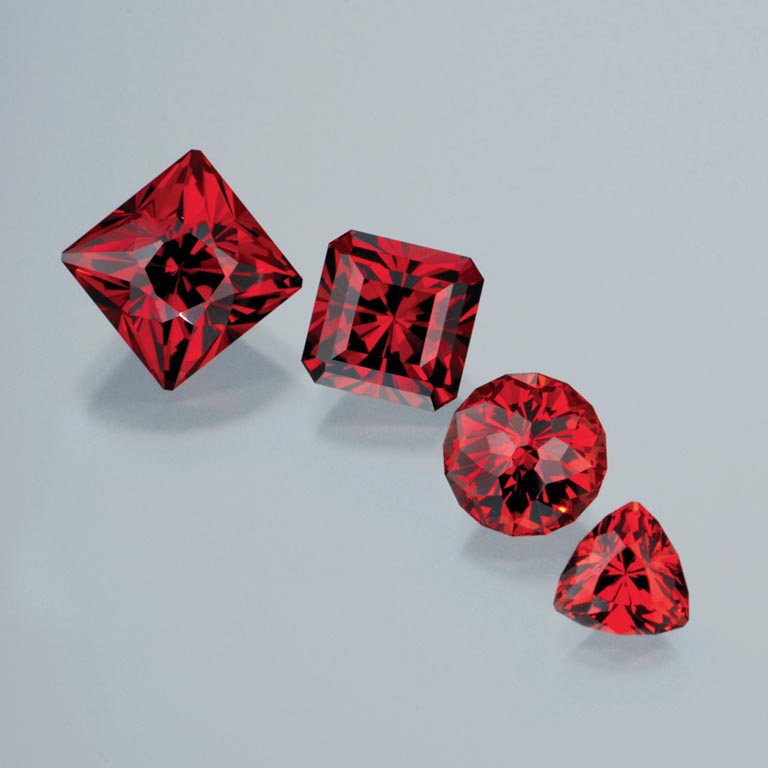 许多柘榴石被切磨成标准形状和尺寸,以方便镶嵌于首饰中。