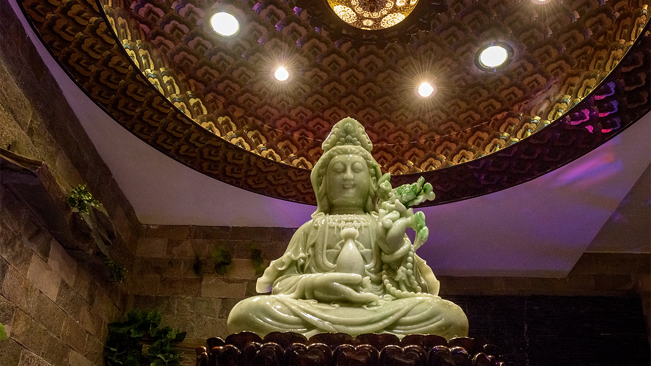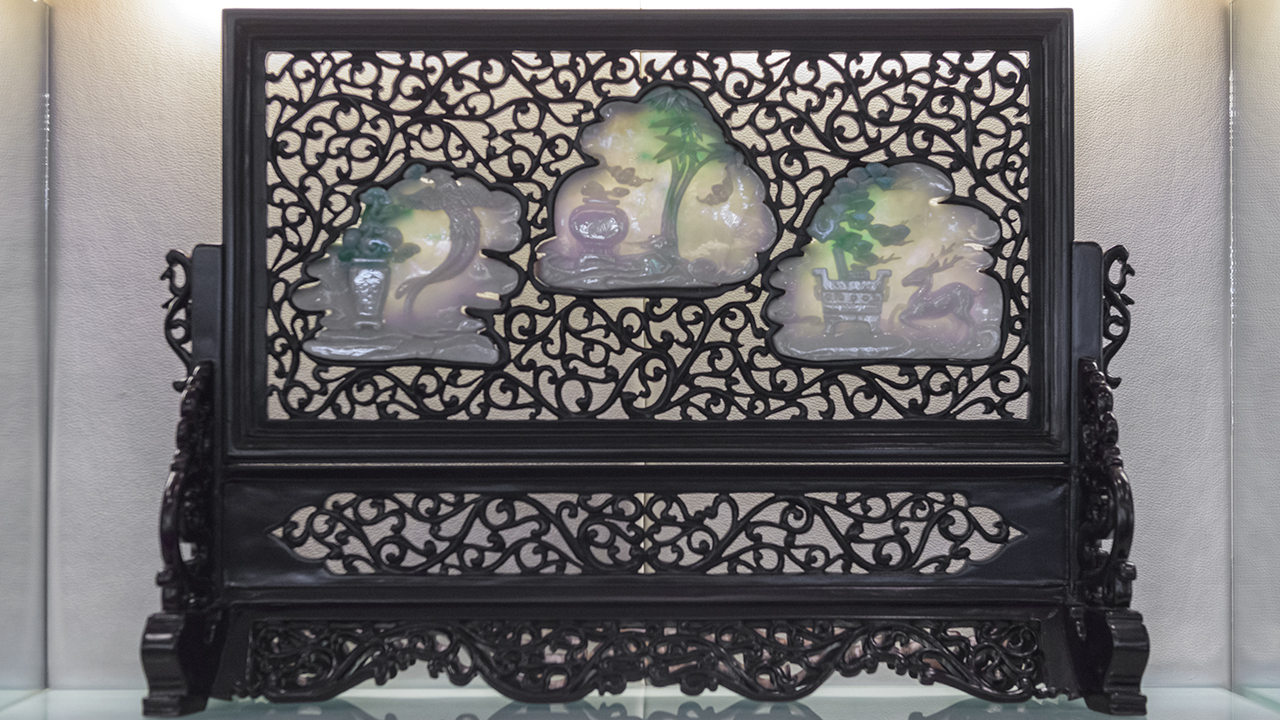 在平洲有成千上万家硬玉店。 有些店铺内饰非常漂亮,与橱窗中展示的硬玉杰作相得益彰。 – 摄影:Eric Welch,由妈祖玉器有限公司友情提供