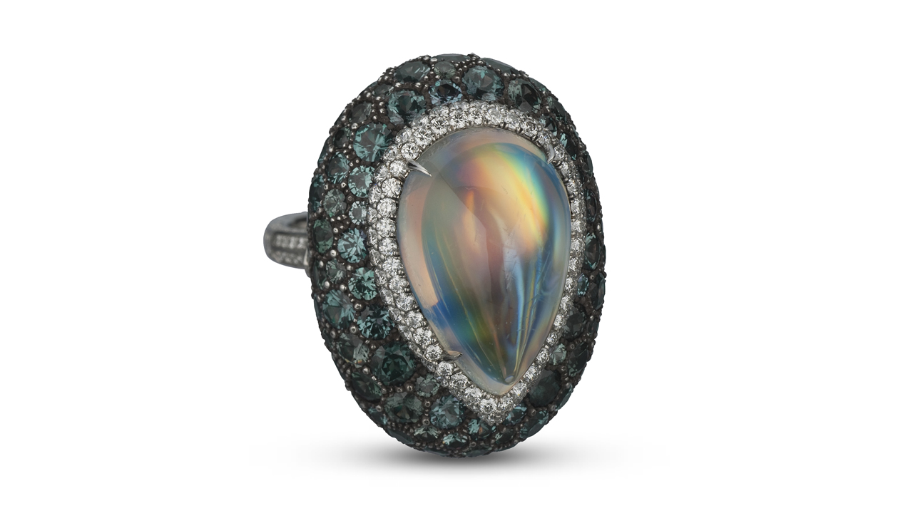 蛋白石、钙钠斜长石和月光石由极细微的矿物层依次堆叠而成,会基于这些独特的结构来形成现象。当光与宝石材料的不同结构相互作用时,会产生闪烁的色彩。