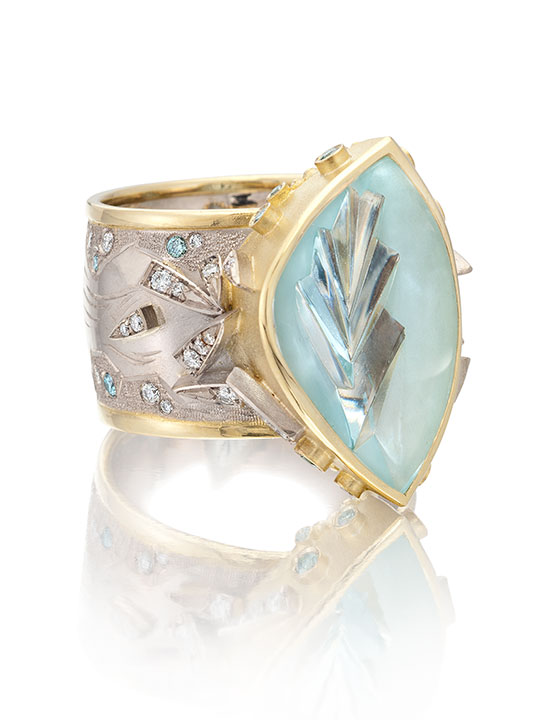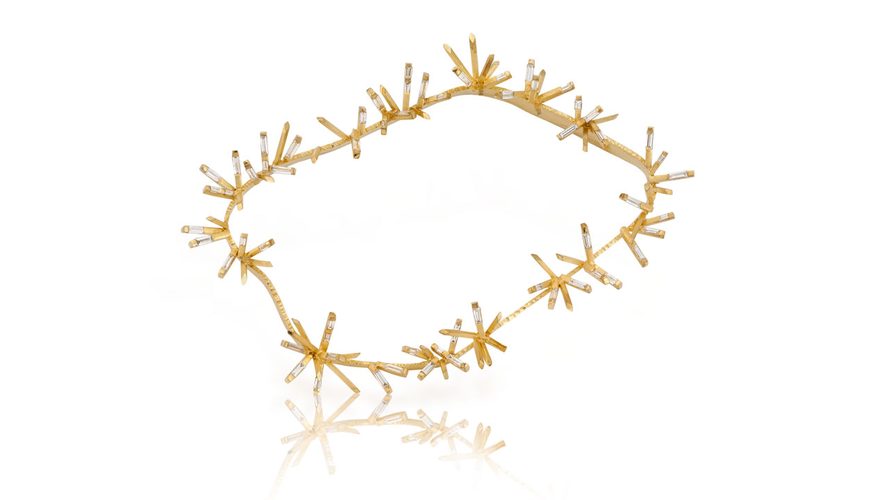 AJDC 是一家致力于促进珠宝设计艺术应用的非营利性组织,每年都会提出一个新的主题。 前几年主题包括“浪”、“迷”和“泪”。收到邀请的会员,如 Alan Revere(阿兰·里维尔)、Alishan Halebian(阿丽莎·哈勒比安)、Todd Reed(托德·里德)、Mark Schneider(马克·施奈德)和 Katey Brunini(凯迪·布鲁尼尼),纷纷在其工作室中摩拳擦掌,创作诠释主题的值得收藏的作品。