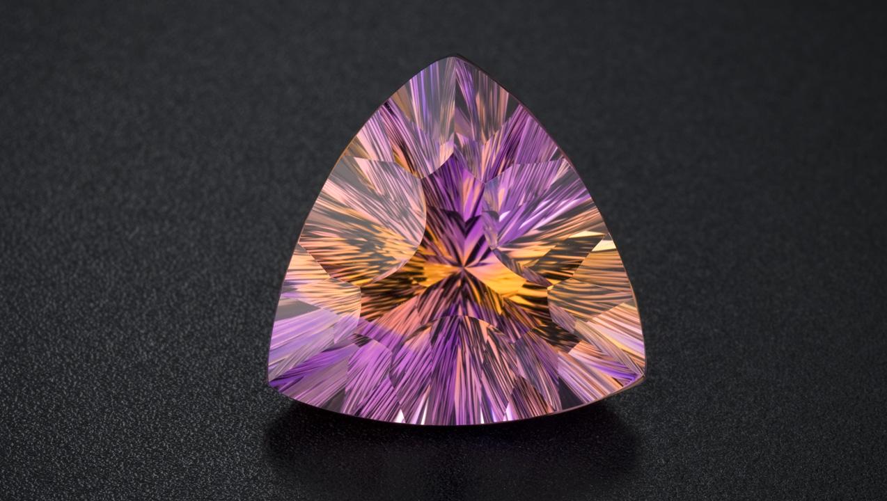 珍しいカットのスタイルは、アメトリンのユニークな色の組み合わせに演出を加えます。