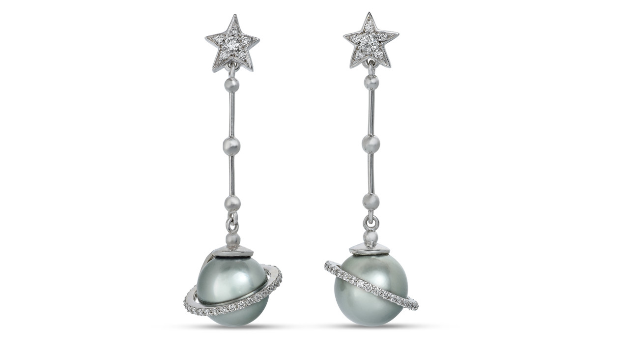 私の作品には物語があります。 このリングのアイデアは、宇宙に対する私の情熱と土星が昨年地球に最も近かったということからヒントを得ました。 私は、土星の環を表現するために、星がリングのシャンクに沿って動いて、真珠の周りを回っているのを想像しました、とEckertは語ります。