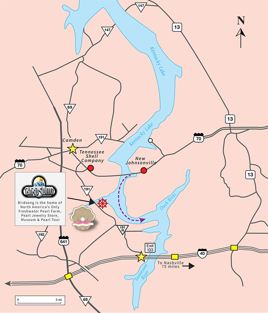 テネシー州における淡水真珠の養殖の短い歴史では、淡水産貝の貝殻の事業における歴史と一部重なっている期間があります。 真珠が養殖される以前、アメリカ産真珠はすべて天然であり、ダイバーによって収集されていました。 American Pearl Compan(アメリカン・パール・カンパニー)の創設者、John Latendresseは、アメリカに真珠の養殖を紹介し、ここで最初に真珠の採取に成功した先駆者でした。 当初、Latendresseは日本で淡水産貝の貝殻と真珠の貿易業務に従事していました。 彼は日本の友人より挑戦を受けて、アメリカで淡水真珠を養殖する決心をしました。 1963年から1983年まで、彼の日本人の妻、Chessyの援助と支持のもとで真珠の養殖の実験を行いました。 20年間にも及ぶ努力が実り、1983年についにアメリカ初の有核淡水養殖真珠を採取することに成功しました。 バードソング・クリークにある彼らの養殖所は、長年に渡って宝飾品の小売業者のために養殖真珠を生産していましたが、現在は当地にあるギフトショップでのみご覧いただけます。