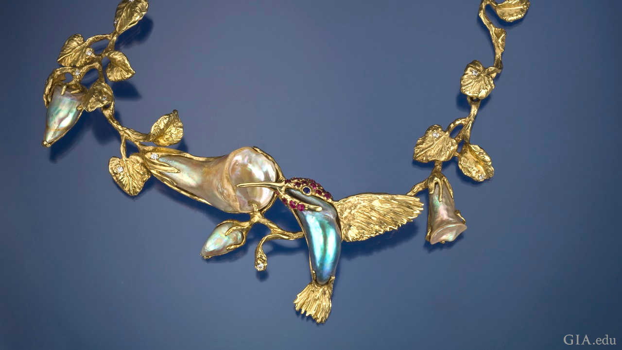 花や昆虫が創り出す自然の世界は、モダンなデザインに引き続き刺激を与えています。過ぎ去った時代の名残り、そして花が咲き乱れる庭園の新しい表現は、今日の宝飾品でも見ることができます。カラー宝石の素材は、以前と比べて容易に利用できるようになり、精密にファセットカットされるか、または彫刻されて見事に素晴らしい芸術品となります。依然として人気の高い真珠は、カラー宝石、ダイヤモンド、エナメルと合わせることでデザインを表現するのに役立ちます。