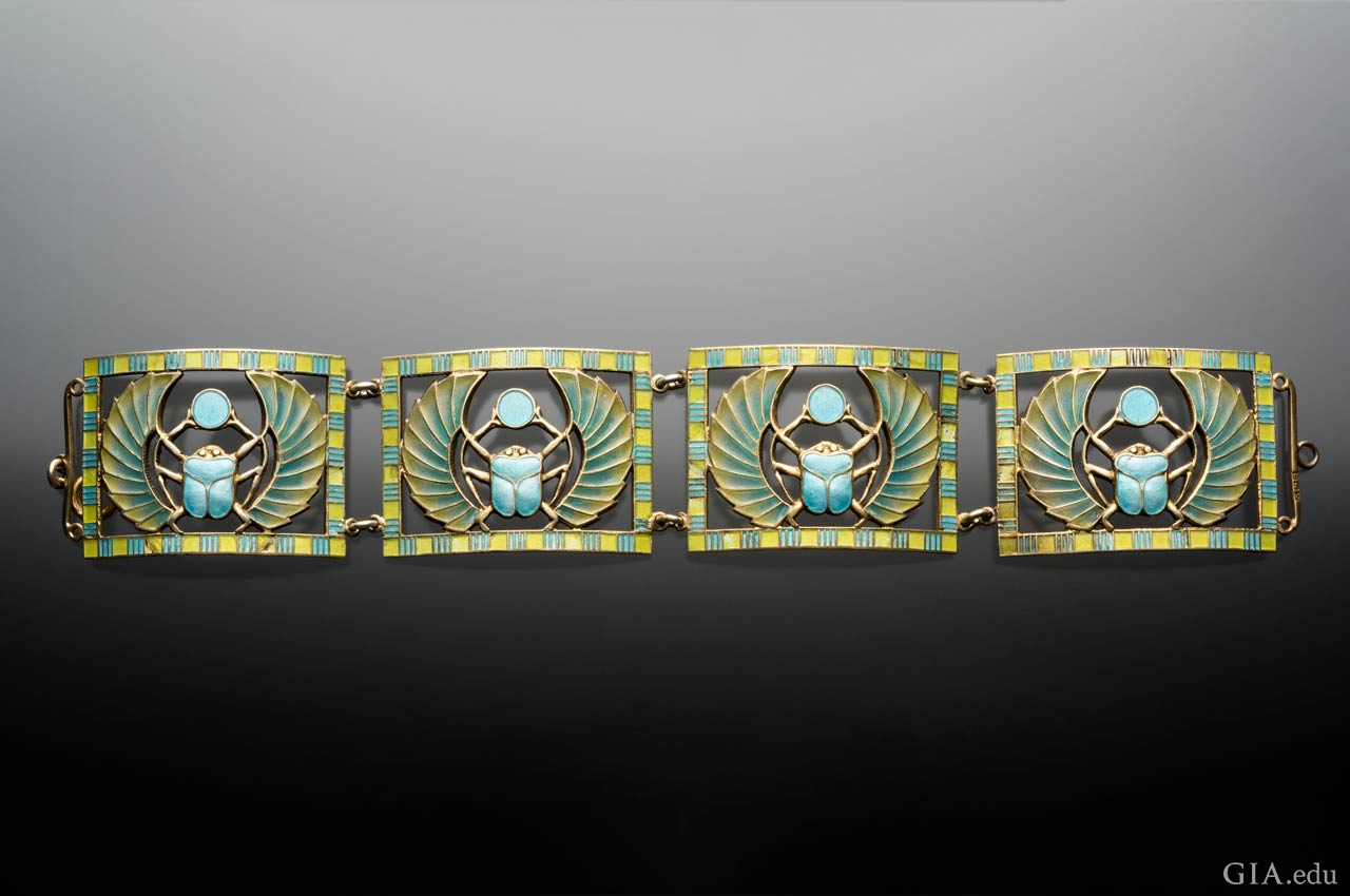 エジプシャン・リバイバルジュエリーは、19世紀末から20世紀初頭にかけて黄金時代に入りました。1869年のスエズ運河の完成とともに地中海と紅海がつながり、旅行する機会やエジプトの文化に対する興味が急増しました。エジプトのファラオ、ツタンカーメンの墓が1922年に発掘され、地中海南部の古代の宝物が発見され、目撃した人々の間で畏敬の念を引き起こしました。これらの歴史的な出来事が起きたため、エジプシャン・リバイバルジュエリーが出現しました。