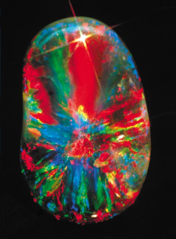 オパールの壮大な遊色効果は、虹色のあらゆる色を示すことができます。
