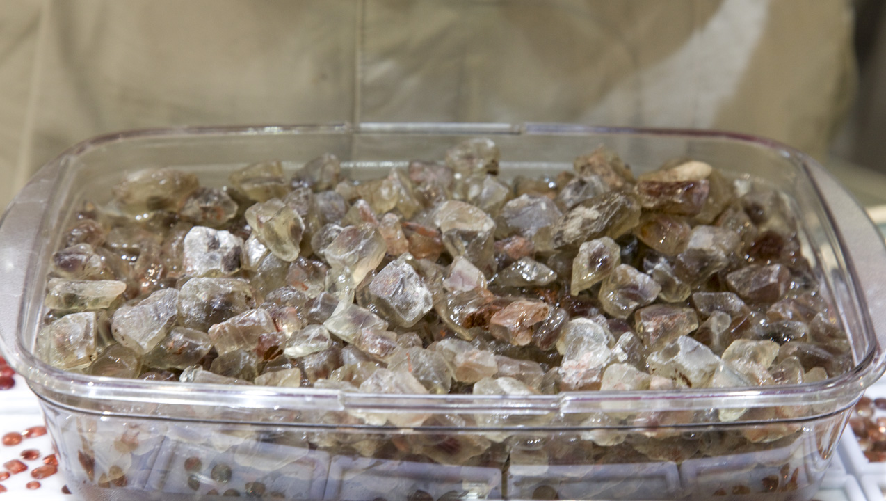 サンストーンはフェルスパー(長石)グループに属しています。 オーソクレーズ(正長石)とプラジオクレーズ(斜長石)のフェルスパー両種が、サンストーン(日長石)の変種を持ちます。 他の長石グループの宝石には、ムーンストーン、光学現象を示さないオーソクレーズ、光学現象を示すあるいは示さないラブラドライト、アマゾナイトなどがあります。 オレゴン州から産するサンストーンは、米国産の天然で未処理の宝石として注目を集めています。