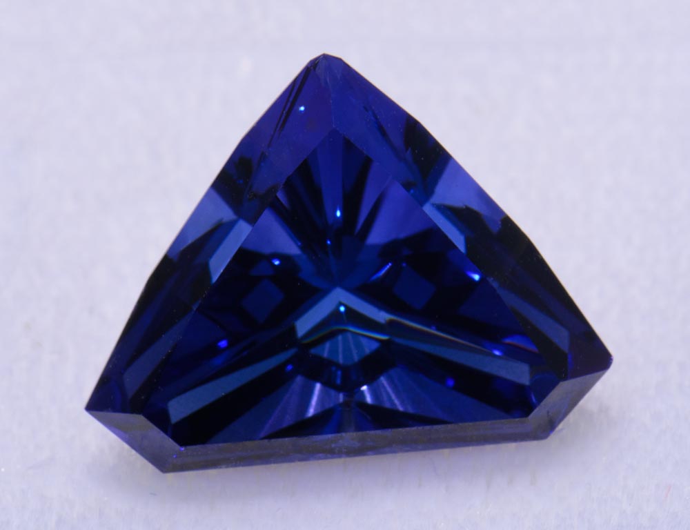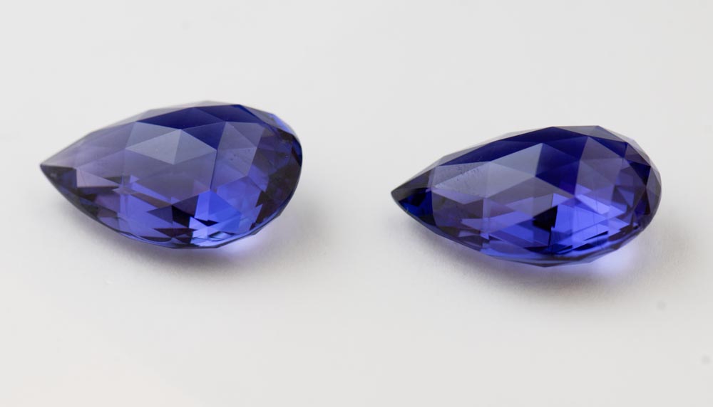 タンザナイトは結晶方向によって異なる色を示します。青色は通常、結晶の短軸方向に配置されているので、青色が多い大きな石をカットすることは難しい場合が多くあります。カット職人はすみれ色が強い大きめの宝石か、または青くても小さめの宝石をカットするかどうかを選ばなくてはなりません。そのためフェイスアップが青色のタンザナイトは、すみれ色が強いものよりも希少になります。