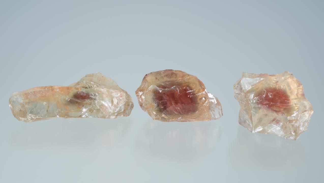 For Don, red gems with the glitter of native copper are the most fascinating: “I like the red stones with the copper schiller bars running through them.” Although bicolor gems and stones displaying red to green dichroism might be more rare, he prizes these gems the most. “The reds with the schiller are just very, very dynamic, and there’s nothing else in the world that looks like it.”