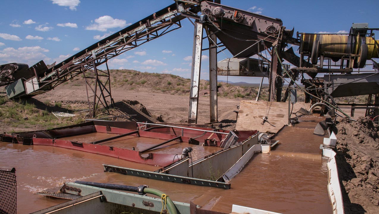 All the water used in mining is extensively recycled. A series of six holding tanks recirculates the 10,000 gallons of water used for washing the concentrate. They allow progressively finer material to separate out before the water is used again. As Don says, “This is the desert, and water is hard to come by…so we don’t use more than we have to.”