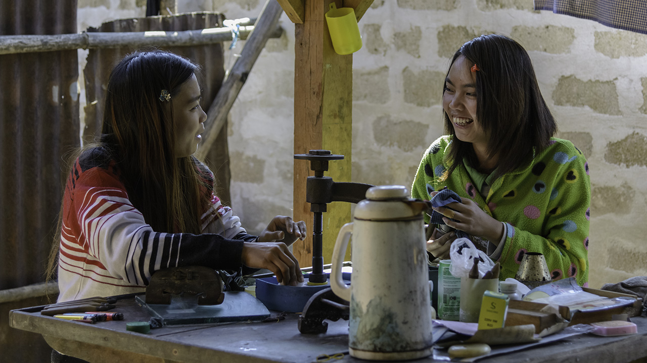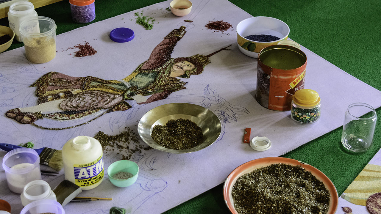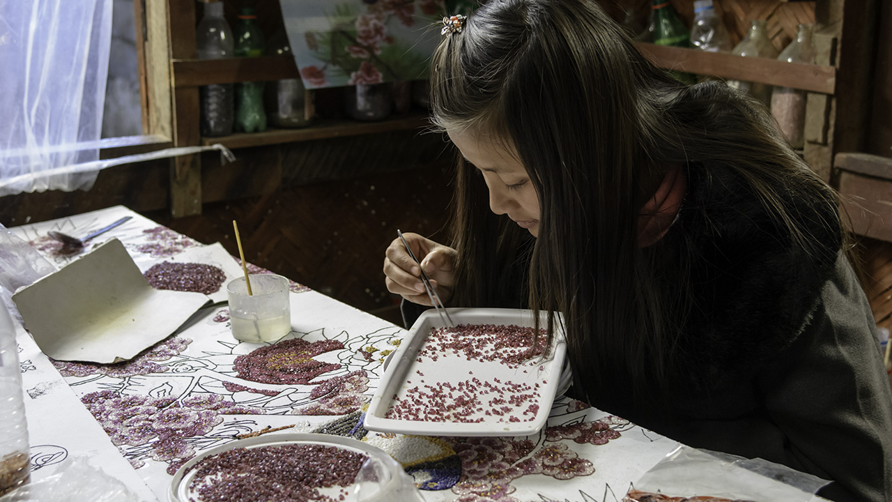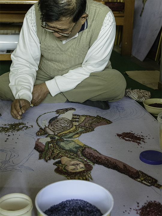 The cutters were fashioning ruby, intensely colored spinel, sapphire, peridot, and other native Mogok Stone Tract gems. While many of the cut stones in the market had what are called native cuts with less than ideal proportions, some were cut very well and the stones that were fashioned at this tiny home-based factory were well cut and beautiful.Other components of the local gemstone value chain were gem paintings. The authors had both previously seen this industry in the Luc Yen area of Vietnam. In Mogok, we witnessed a master artist, a gem-painting factory, and some stores selling gem paintings. This art form incorporates tiny gems not suited for jewelry use and turns them into artistic creations. Being able to utilize all the material from a mine in some profitable fashion increases the likelihood of continued mining. Hopefully, this art form will grow and spread throughout gem-mining communities.