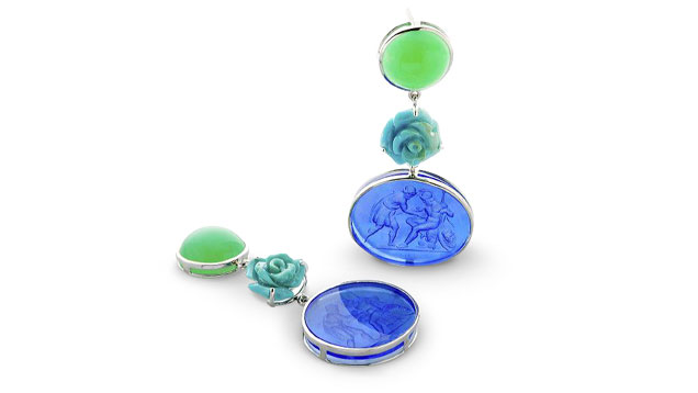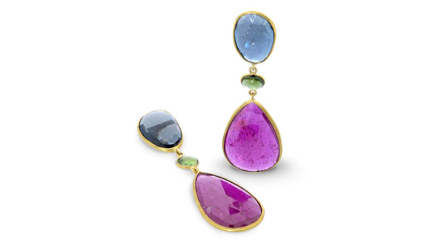 The sisters’ dream became a reality in 2007, when they established Bahina Jewels. “Bahina,” a Hindi term for “two sisters,” captures the spirit of their venture, Vieillard-Jordi says.Vieillard-Jordi manages stone purchases, importing and exporting, and inventory, while Jordi handles design and marketing. They work closely together, traveling to trade shows around the world, and making trips to Italy for Venetian glass cameos and to India to inspect and buy loose stones for their designs, which are set in 18K gold. Bahina’s designs are available through private viewings in Switzerland, as well as high-end boutiques in Berne and Zurich, international trade shows like JCK and the Hong Kong Jewellery and Gem Fair, and through the company’s website.