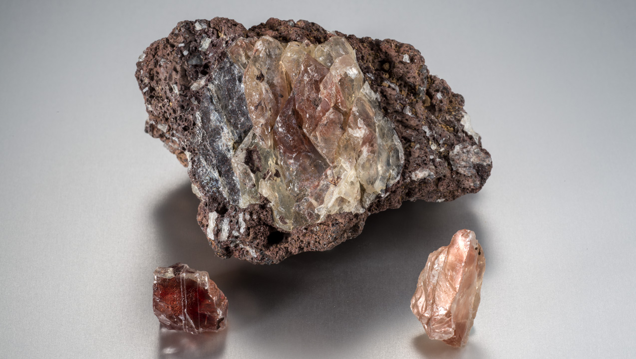 Despite these constraints, he knows the Ponderosa’s weathered reddish basalts are blessed with high concentrations of sunstone: “This mine is tremendously rich—the whole mine is 60 acres—and we get a kilo and a half of sunstone out of every cubic yard of dirt moved…so it’s arguably one of the richest gemstone mines in the world.”