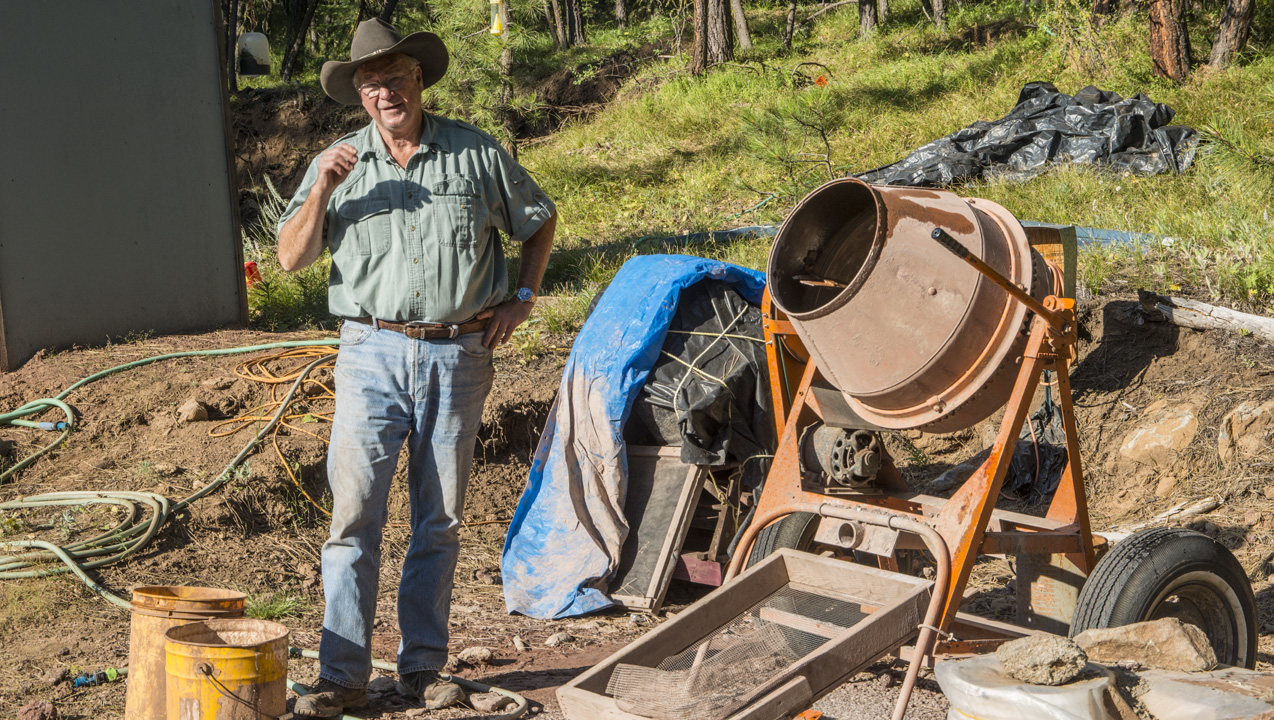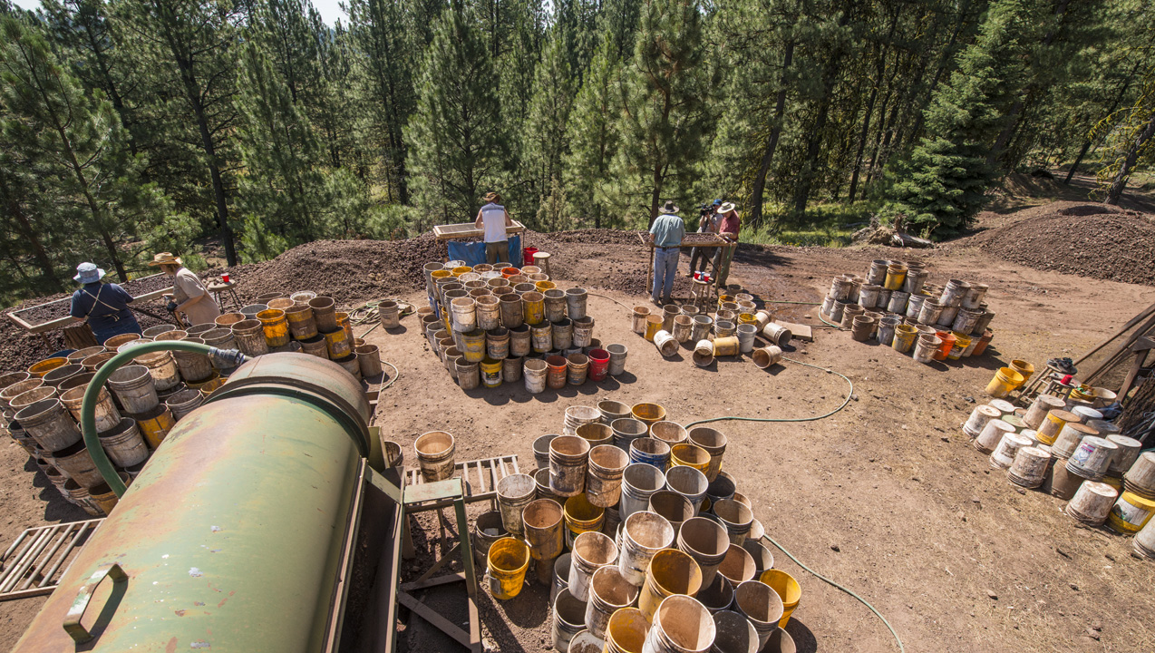 Once all the concentrate from a load is recovered, it’s washed for about an hour in a small cement mixer, which takes about 35 kilos at a time (60-70 pounds). “It’s almost like a rock tumbler…a giant rock tumbler,” Woodmark jokes.