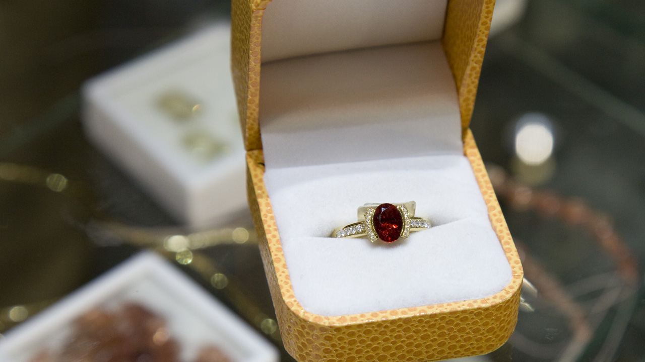 Most consumers know about diamond, ruby, sapphire, and emerald, and might well favor those Big 4 gems. John understands it takes time and effort to open peoples’ eyes to sunstone’s unique attributes. “You have to sell an Oregon sunstone,” he says. “Most customers don’t know what it is.”“The whole process of educating people and telling them about it,” he explains, “makes the stone personal.”