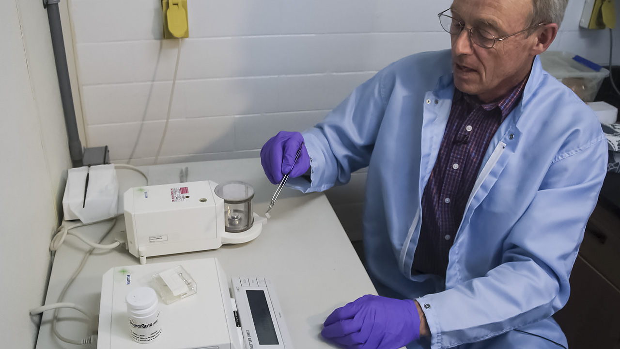 After weighing the inclusion, and adding a precisely calibrated amount of the spike, Shirey adds acid to dissolve the inclusion and thoroughly mix its constituents together with the spike.