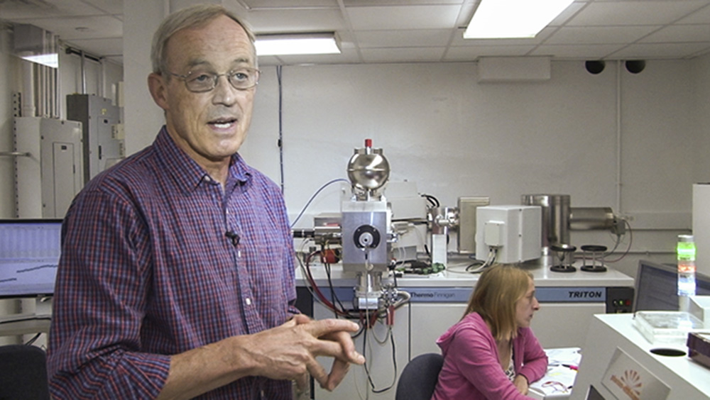 In this video, Dr. Shirey explains the use of mass spectrometry to count the isotopes of osmium and rhenium recovered from the sulfide inclusion. This is the final stage of the analysis that began with selecting diamond crystals with suitable sulfide inclusions from working mines. Shirey and his colleagues will use the data captured on the relative amounts of each isotope to determine the age of the inclusion and therefore the diamond itself.