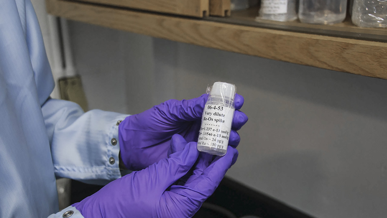 The weight of the inclusion is especially important, because it controls the exact amount of a special chemical tracer—called a “spike”—that Shirey has to add for the next stage of the work. The spike contains a precisely calibrated mixture of different isotopes of rhenium and osmium.