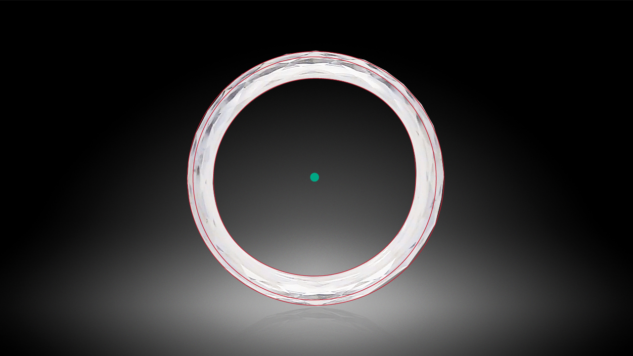 This laboratory-grown diamond ring was cut from an 8.54 ct plate grown by chemical vapor deposition (CVD). Laser cutting produced a near-perfect circular ring, as demonstrated using digital imaging analysis to measure its inner and outer circumferences (figure 2).