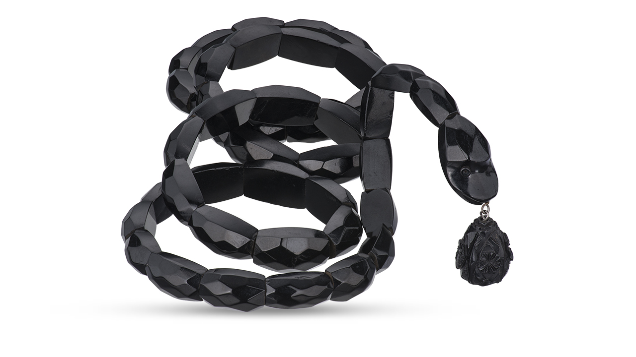 There is also avant-garde jewelry from Brazilian designers, South Sea pearl necklaces and snake bracelets – one made of Victorian-style jet beads, the other of 15K gold.