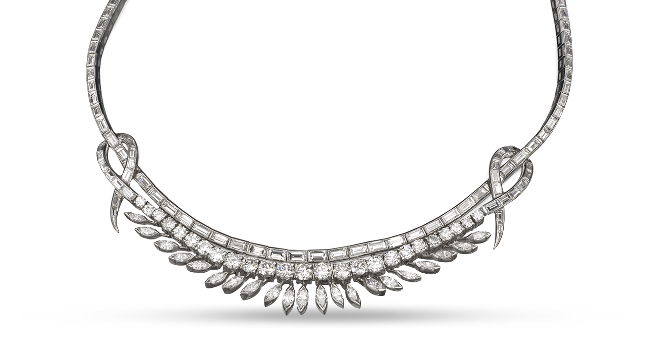 We used 88 total carats of diamond jewelry and a smattering of art deco, contemporary and Victorian pieces, as well as unusual carved gems such as a star sapphire. There are DeBeers-award-winning pieces and organic pieces like a cow bone brooch.”