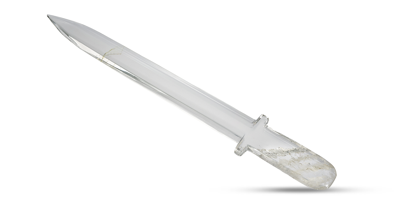 The quartz pieces, in addition to serving as a foundation for the entire exhibit, represent the entire cycle of a quartz – from the rock crystals to a 202.80-gram sword-shaped letter opener and “The Cyclops,” an 8,783.50-ct flawless, colorless natural quartz gemstone with a round brilliant-cut pavilion and a step-cut crown.
