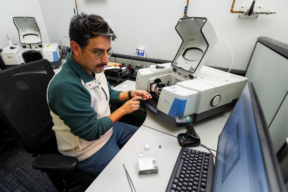 The infrared spectrometer measures the invisible light spectrum, known as infrared. Infrared spectra can help the researcher determine if a gem has been treated, or whether it is a type I or type II diamond.