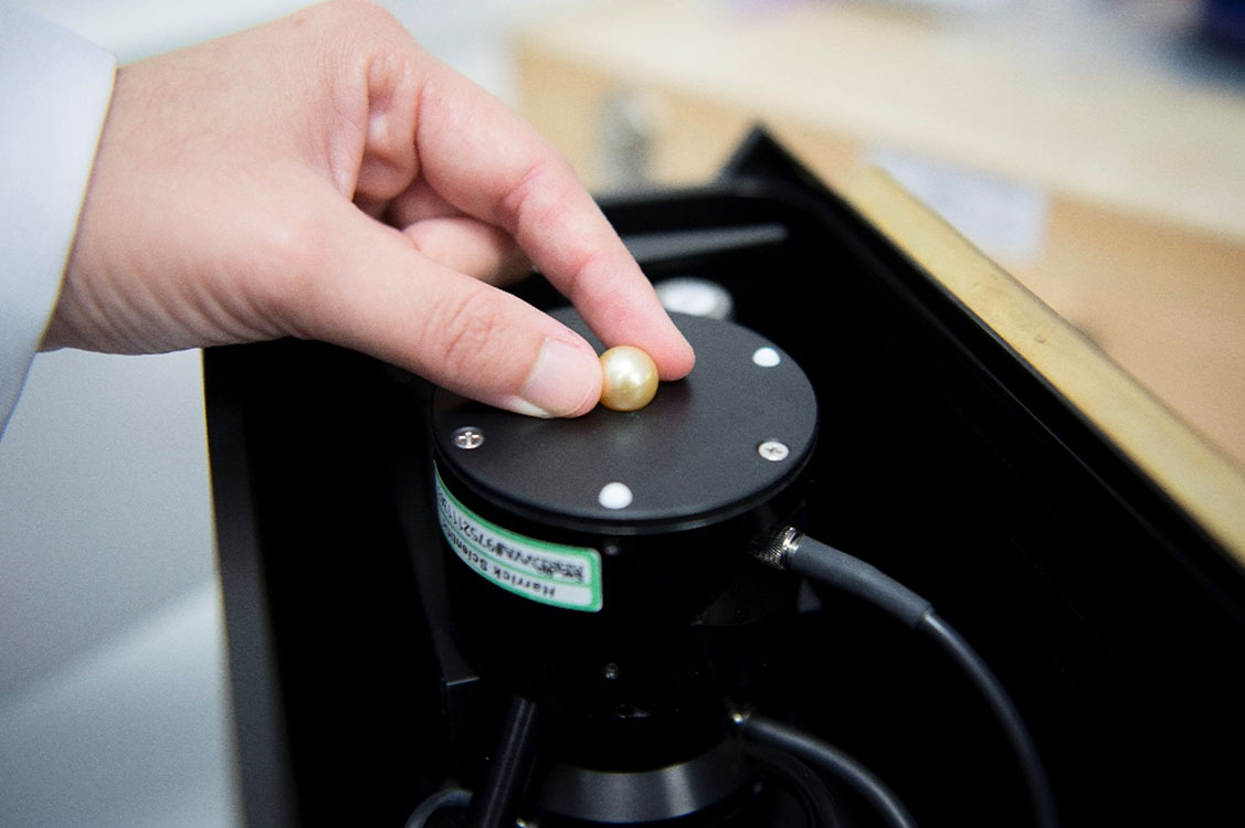 The technique is used to confirm the pearls’ growth environment. Freshwater and saltwater pearls present different luminescence reactions under x-ray excitation due to manganese content.