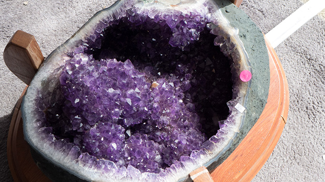 Mr. Halem was at the Tucson show with a large variety of quartz geodes as part of his inventory. He spoke to us on a wealth of topics, from geode sources, quartz treatments, geode cutting, evaluating geode qualities, packing geodes, and the geode business.